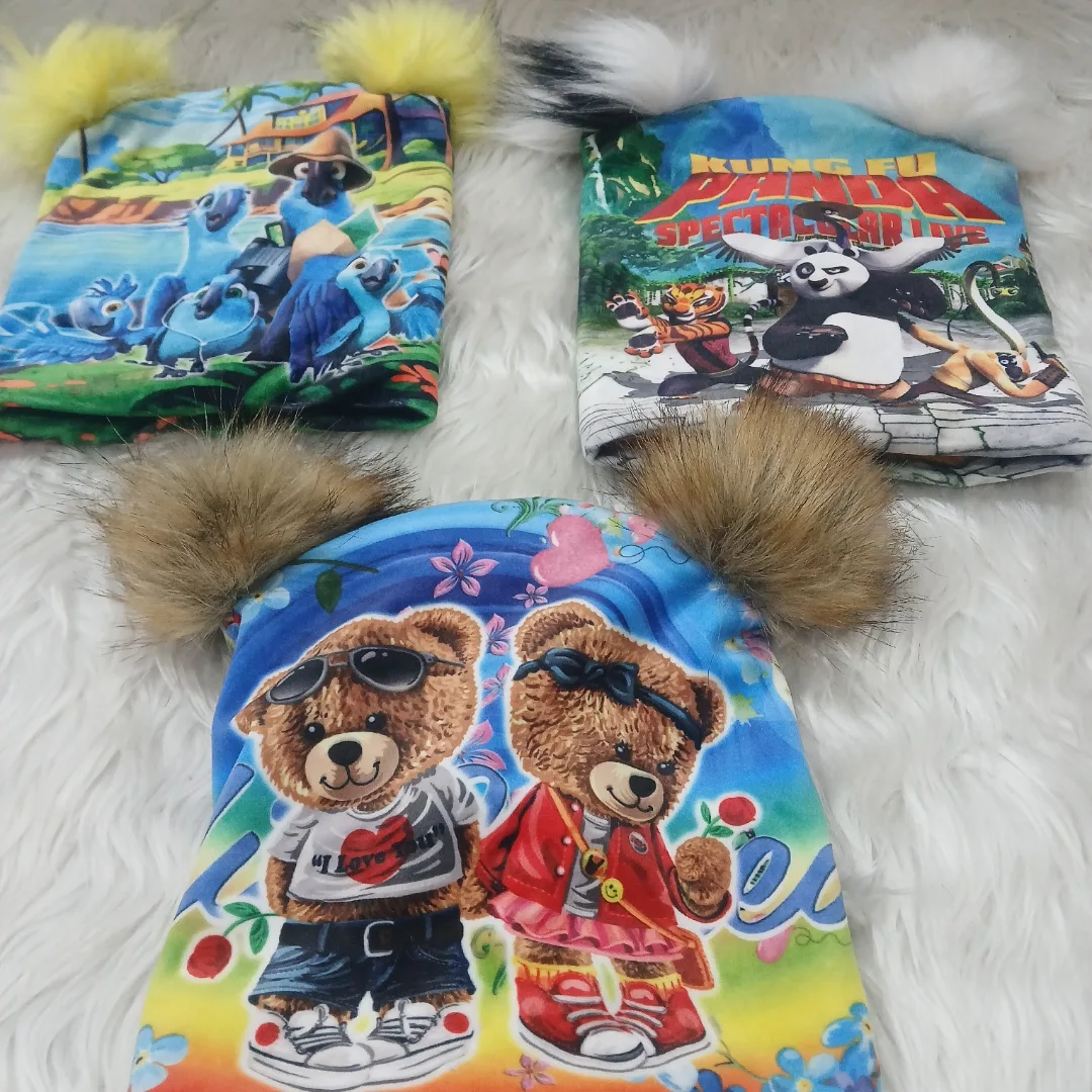 کلاه دوپوم بچه گانه طرح کارتونی داخل خز