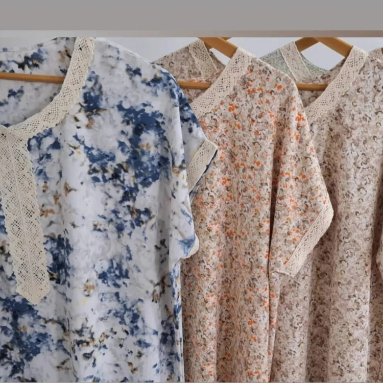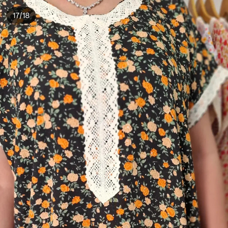 ماکسی بزرگسال آستین کوتاه جنس نخی و کرپ نخ نگین دار