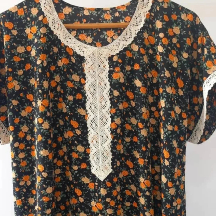 ماکسی بزرگسال آستین کوتاه جنس نخی و کرپ نخ نگین دار، ابرفت نداره و تضمینی خنک مناسب فصل.